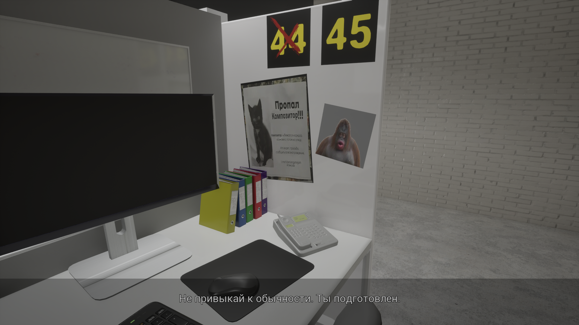 Вы устраиваетесь на новую работу в обычный офис. Первый день — звонки, приветствия, запах кофе. Всё кажется привычным, пока не начинают происходить странности. Голоса, шорохи, пустые коридоры... Никто не обращает внимания, будто время остановилось. Исследуйте офис, погружаясь всё глубже в непонятную тишину — и узнайте, что скрывается за дверью в конце коридора.